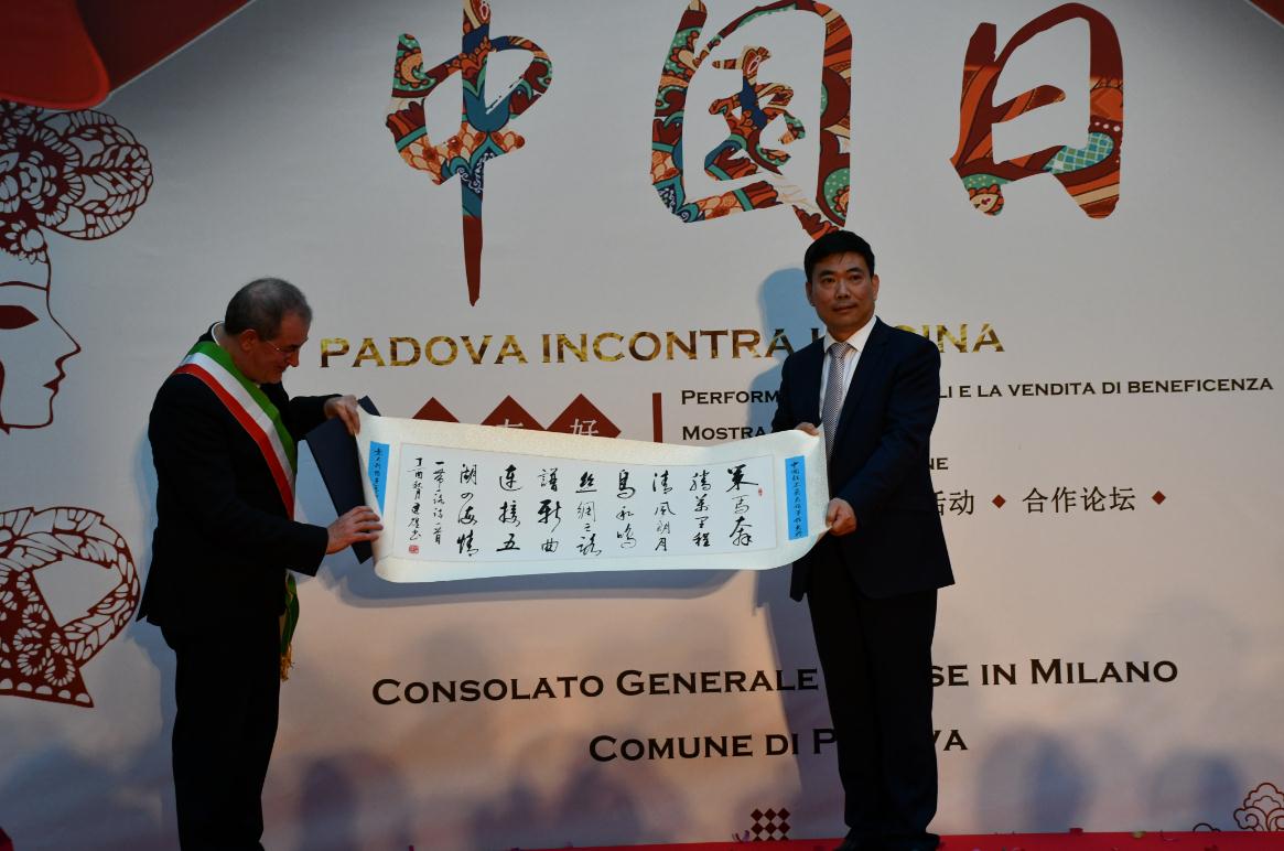 帕多瓦市市长代表感谢中国驻米兰总领馆给予帕多瓦市最珍贵的合作,此次活动无疑为当地构建了链接文化,展示与经济交流的平台,增进了双方的友谊,加深了相互的了解。他指出,帕多瓦是威尼托大区最古老的城市,是东西方文化的支点,帕多瓦大学历史悠久,是文化继承与国际开放的代表,近年来吸引了众多的中国留学生。同时,帕多瓦还拥有一个重要并充满活力的华人群体,其中很多华人企业家为当地与中国企业界的交往与合作构建了一座重要的桥梁。他强调,中国政府40年前开启的改革开放政策,给中国及整个世界都带来了重要的变化与成果,帕多瓦政府坚信并将不断加强双方的宝贵合作,并将以今年此为开端。