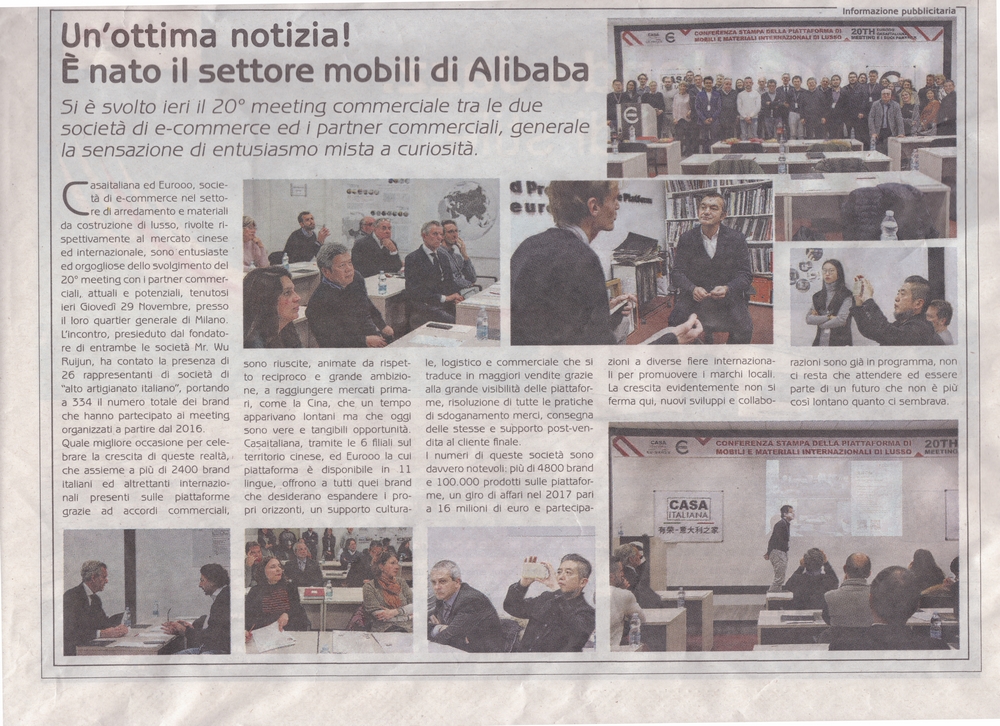 这届发布会的圆满成功再次证实了这两个平台在国际家居市场上的重要性。这是一个激动人心的时刻,援引意大利主流媒体《la Repubblica》共和国报的对于本次大会报道的主题:“Un’ottima notizia! È nato il settore mobili di Alibaba”家具界的阿里巴巴诞生了!