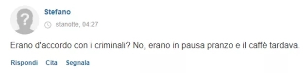 ——“他们(警察)跟犯罪分子一伙的么?不是,他们只是去吃午饭了,然后喝了杯咖啡。”