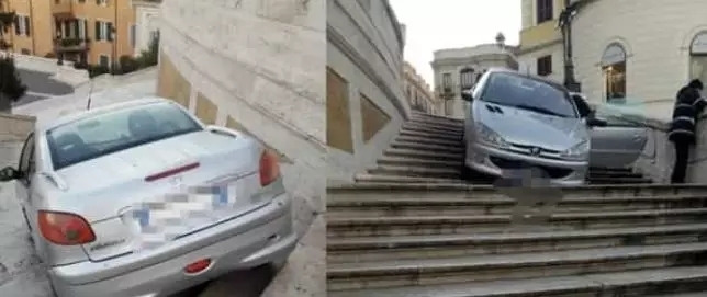 据Romatoday新闻网站报道,这不是在拍摄电影,而是真实发生的一幕:9日上午,一名27岁的男子驾驶着一辆Peugeot 206汽车,开进了罗马市中心位于山上天主圣三堂(Trinità dei Monti)前的西班牙广场台阶上。据悉,这名男子驾车至山上天主圣三堂广场时,由于驾驶失控,导致汽车滑入了西班牙广场的台阶。