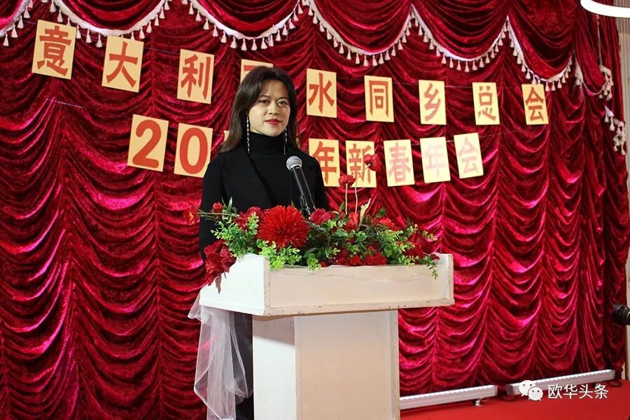 ▲意大利丽水地区同乡总会副秘书长涂晓菲主持新春年会,她代表主办方对各界嘉宾的莅临表示欢迎和感谢,并致以新春的祝福。
