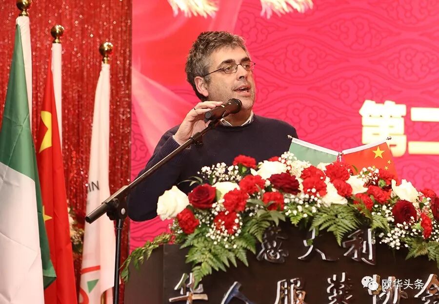 普拉托市副市长Simone Faggi先生代表普拉托市长向此次庆典的顺利召开表示祝贺,对这些年来服协所做出的工作表示感谢,希望今后加强沟通与交流,为两国居民更好的融入贡献力量。