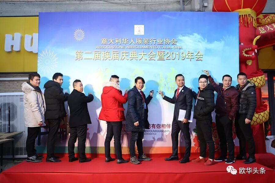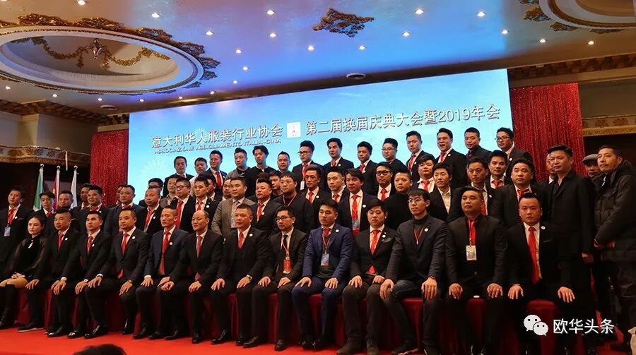 意大利华人服装行业协会第一常务副会长邱伟宣读部分贺电内容、执行会长丁建波宣读理事会成员名单,与领导及嘉宾上台合影后,意大利华人服装行业协会全体会员上台合唱服协版的真心英雄将现场气氛推向高潮,接下来节目精彩纷呈,喜迎2019新春年会,共同祝愿意大利华人服装行业协会在李小锋会长的带领下再创辉煌!