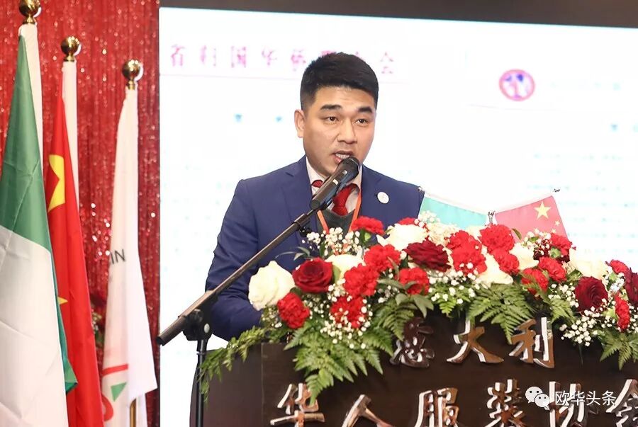 李小锋会长在致辞中表示,意大利华人服装行业协会热心于公益,在祖籍国与驻在国发生自然灾害时都会尽自己的一份绵薄之力奉献爱心,以及在佛罗伦萨总领馆的带领下协会更是积极参与了云南省的扶贫活动,其他公益活动资料大家刚才在视频里已经看到,往事历历在目,无法一一例举,在换届庆典之际,蝉联第二届意大利华人服装行业协会会长,李小锋深感荣幸,他表示今后依然会秉持着服协不变的平等、分享、上进、公益四大宗旨,会一如既往的带领服协继续服务华人华侨,帮助当地华人服装行业提升竞争力,并且让华人更好融入当地社会,弘扬中华传统文化。特别是对于华人华侨年轻的这 一代,他们的参与会让服协在两方面更上一层楼,第一,作为跨文化的一代,真正能够发挥向当地社会传播中国文化,用当地语言讲好中国故事,成为高水平参与中意文化交流的使者;第二,对于那些有专业特长的年轻一代华人华侨,希望他们结合自己在意大利的优势,以最合理的方式参与祖国的第二次改革开放事业,助力祖国家乡的现代化建设,向祖国亲人讲好意大利故事。