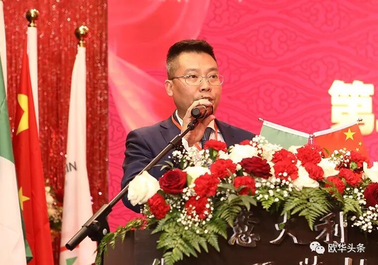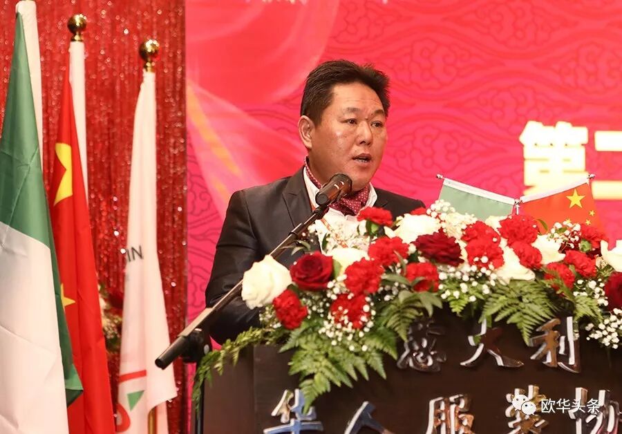 ▲意大利普拉托华商会会长周荣景代表侨团致辞