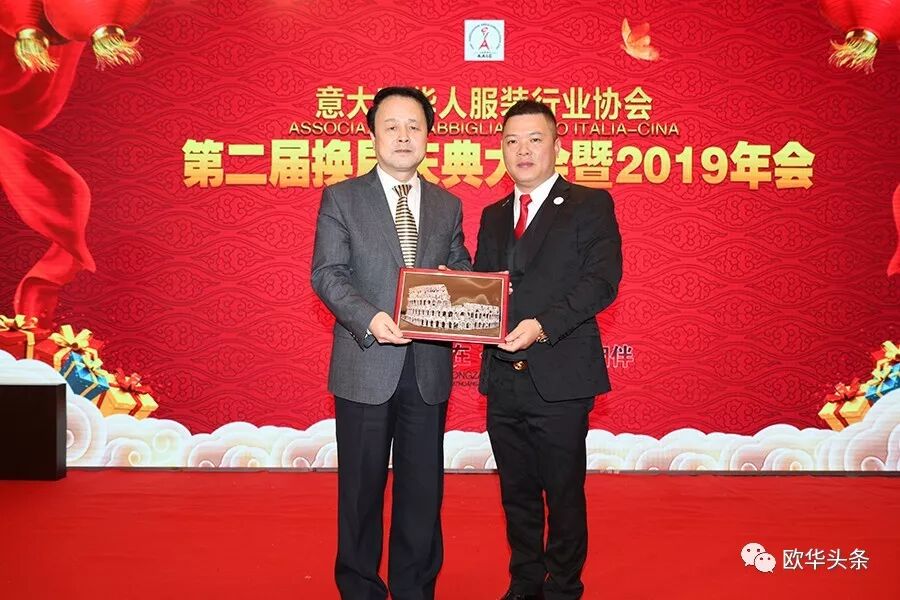 ▼各社团向意大利华人服装行业协会赠送纪念品以表祝贺
