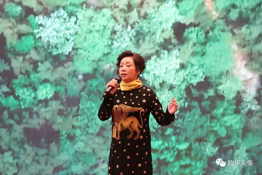 ▲意大利华人服装行业协会第一常务副会长邱伟宣读部分贺电内容