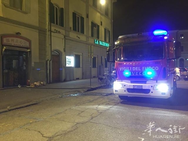 1月12日这天晚上大约21点20分左右,这家位于恩波利市piazza don Minzoni地区的华人餐厅厨房里发生火灾。油烟机和烟囱起火并导致烟雾和大火,厨房里面的人都跑出来到外面路上。恩波利的消防火警出动数辆消防车水车,还有从佛罗伦萨西区也出动了消防车和云梯车介入,一共出动了14名消防人员来到现场灭火。厨房里的一些物件被烧毁。事件中没有人受伤。火灾起因还在调查中。(alexzou编译)