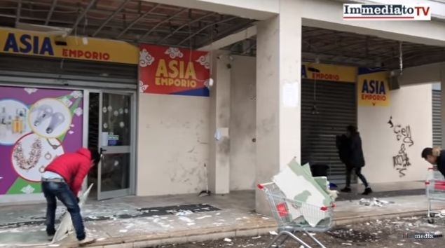 新欧洲侨报编译消息:昨天深夜,Foggia市又一家华人店面被炸弹袭击!据悉这家商城位于via Miranda,随着一声巨响之后,卷帘大门被炸开了口,瓷砖和玻璃片掉落一地,化妆品货架也东倒西歪。路过的汽车小心翼翼地放慢速度,之后快速离开。意大利记者闻讯赶到现场,见到3个华人正拿着扫帚清理店门口前的爆炸物碎片。面对记者的镜头,年长一些的华人男子表示“没什么好说的,看看他们干的这是什么事啊!”当被问到爆炸的动机时,华人男子冷冷地答道“他们想偷东西,但没得逞”,会不会是敲诈呢?“我不信。我们从没受到过威胁,也没人来要过保护费。这就是盗窃。几个月前我们刚开业几周时也发生过盗窃,那次他们偷了些货,这次他们没偷成”。