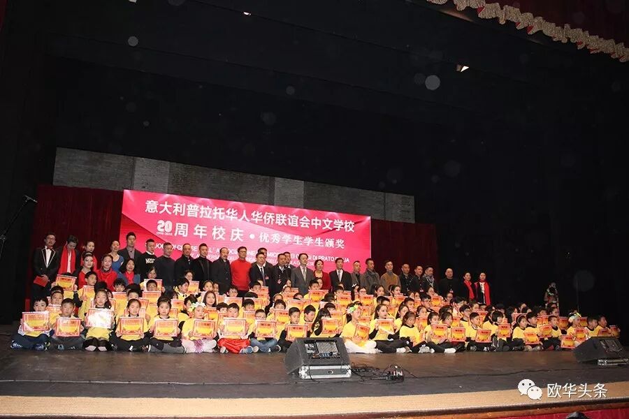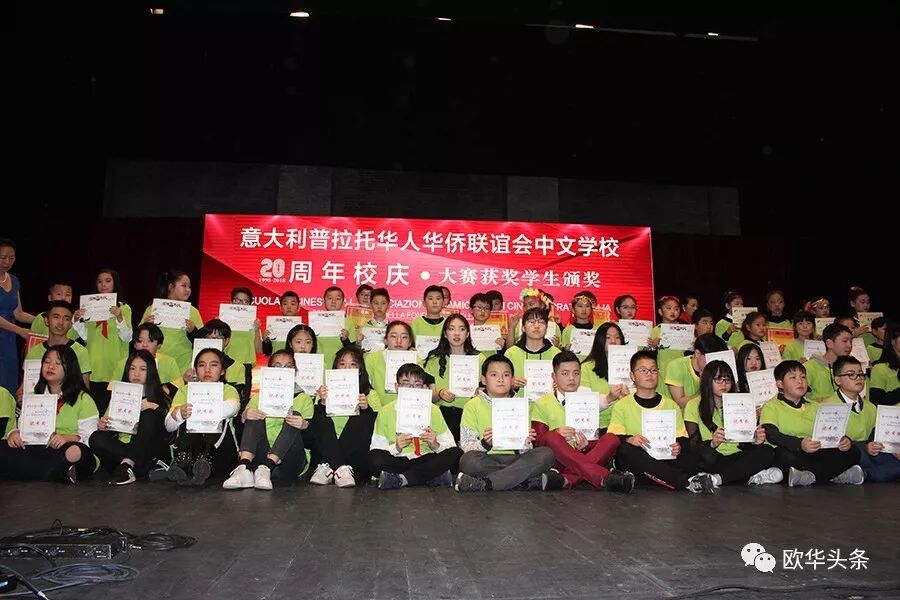 在普拉托华人华侨联谊会中文学校20周年校庆之际,为优秀学生颁奖。