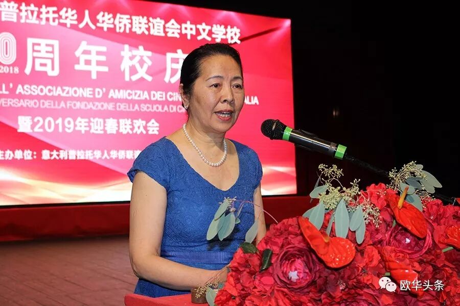 ▲意大利中文学校联合总会会长、米兰华人华侨中文学校校长陈小微表示,吴静云执行校长是大家学习的楷模,中文学校所取得的辉煌成绩离不开她和陈洪生秘书长的辛勤耕耘,同时衷心的祝贺普拉托华人华侨联谊会中文学校20周年校庆取得圆满成功!