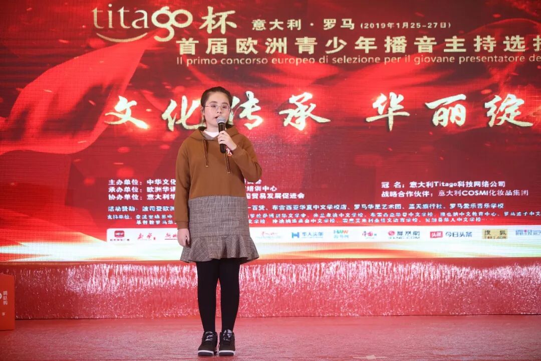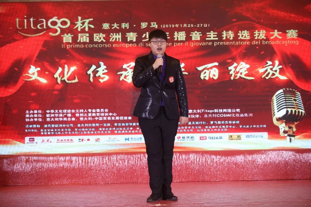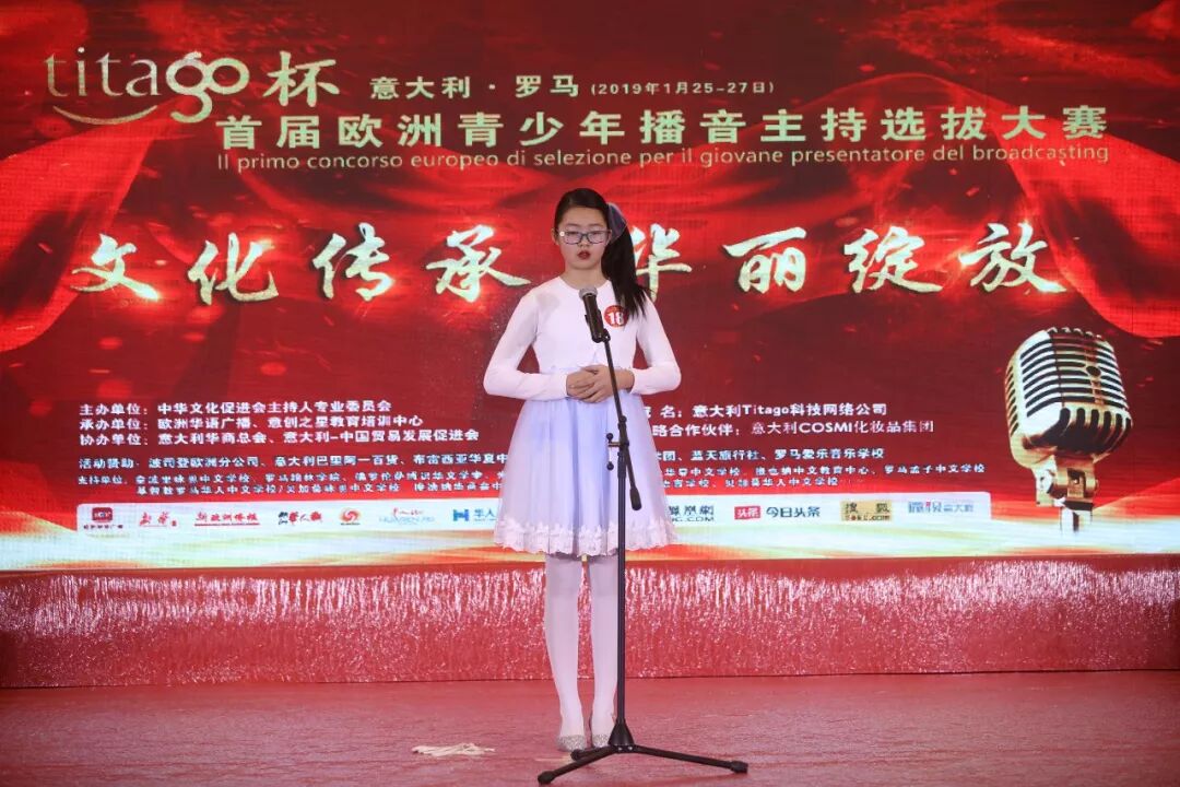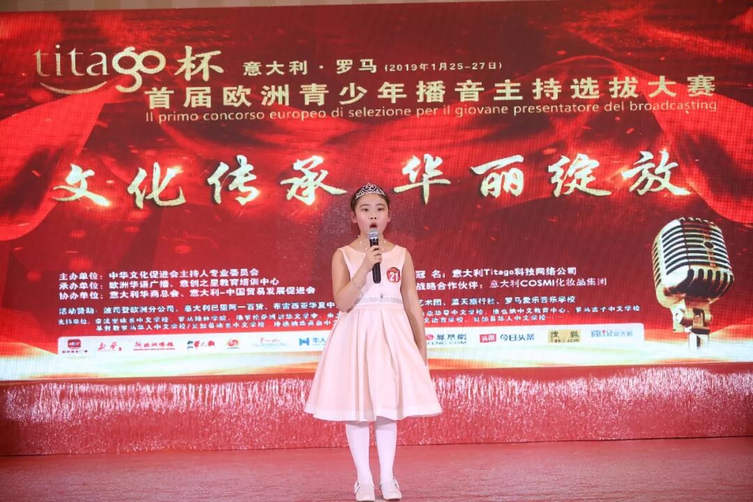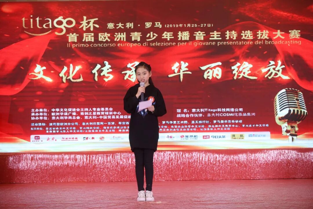 欧洲华语资讯:1月25日-27日,由中华文化促进会主持人专业委员会主办,欧洲华语广播、意创之星教育培训中心、国媒教育科技有限公司联合承办,意大利Titago科技网络公司独家冠名,意大利COSMI化妆品集团战略合作,意大利华商总会、意大利-中国贸易发展促进会协办,波司登欧洲分公司、意大利巴里阿一百货、布雷西亚华夏中文学校特别赞助的“Titago杯”首届欧洲青少年播音主持选拔活动在罗马喜来登大酒店成功举办。