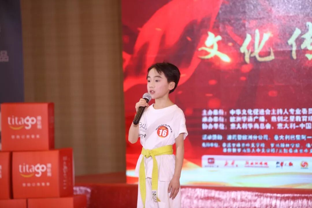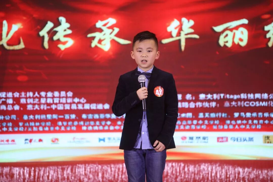 活动冠名商运营总监陈坚表示,通过这样的活动,不仅让华人青少年进一步了解祖国悠久的历史和灿烂的文化,也增强他们作为中华民族成员的自豪感和荣誉感,增进对祖国和家乡的感情。陈坚还说,意大利Titago科技网络公司作为一家年轻的华人企业,我们愿意与其他兄弟华人企业一道,携手并进,让我们和孩子们一起成长,一起传承中华文化,实现自我华丽绽放。