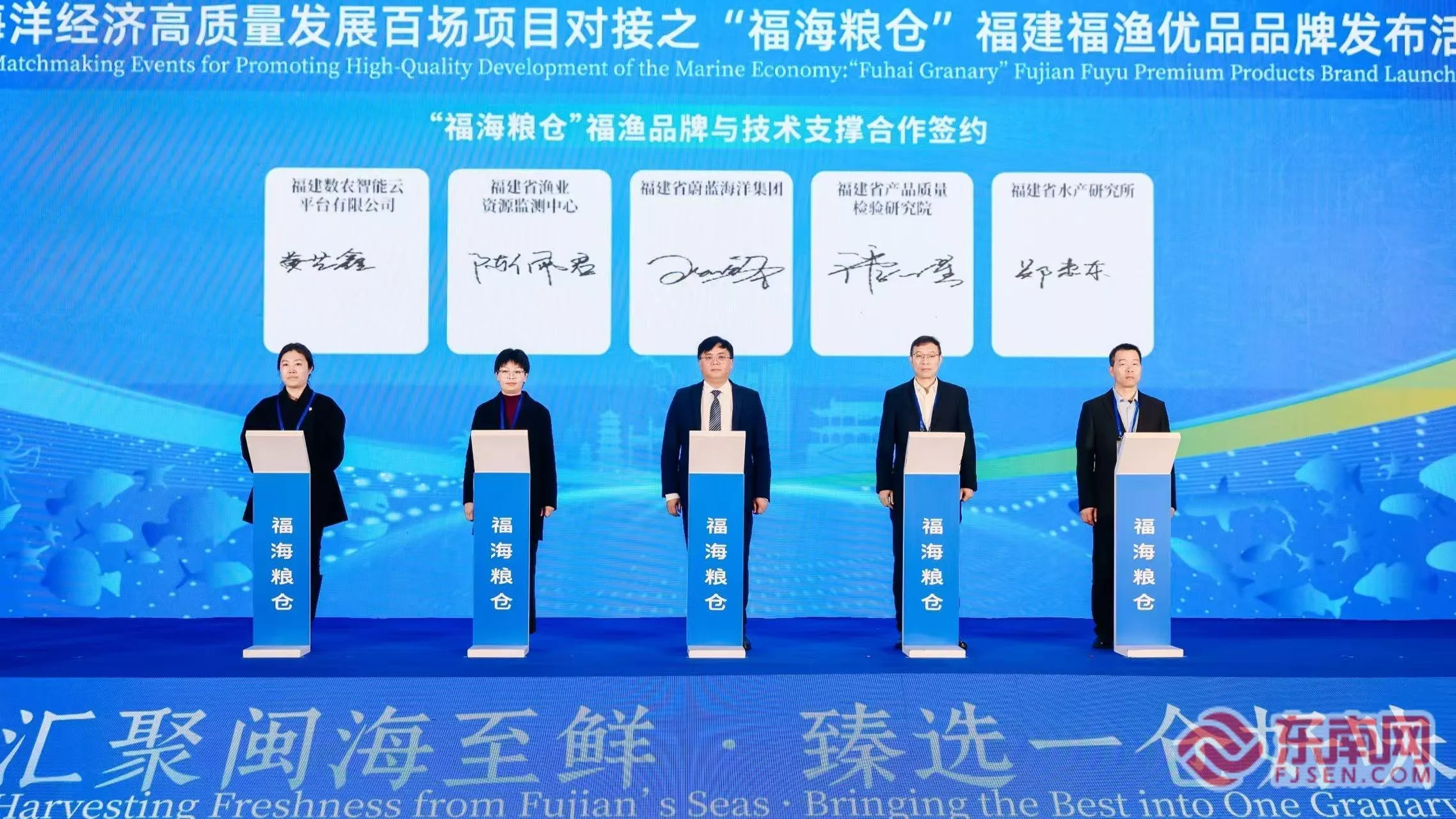 活动现场,顺利完成“福海粮仓”品牌技术支撑合作意向书、“福海粮仓”区域公共品牌合作意向书以及“福海粮仓”水产品企业合作意向书等一系列签约。福建省蔚蓝海洋集团与福建省产品质量检验研究院、福建省水产研究所等多家技术机构,晋江紫菜、崇武鱼卷、宁德大黄鱼等区域品牌代表,以及来自福建各地市的近百家重点水产养殖、加工龙头企业建立了紧密合作关系,签约范围涵盖品质监管、技术支撑、产销联动等多维度,初步构建起覆盖全产业链的品牌共建体系。