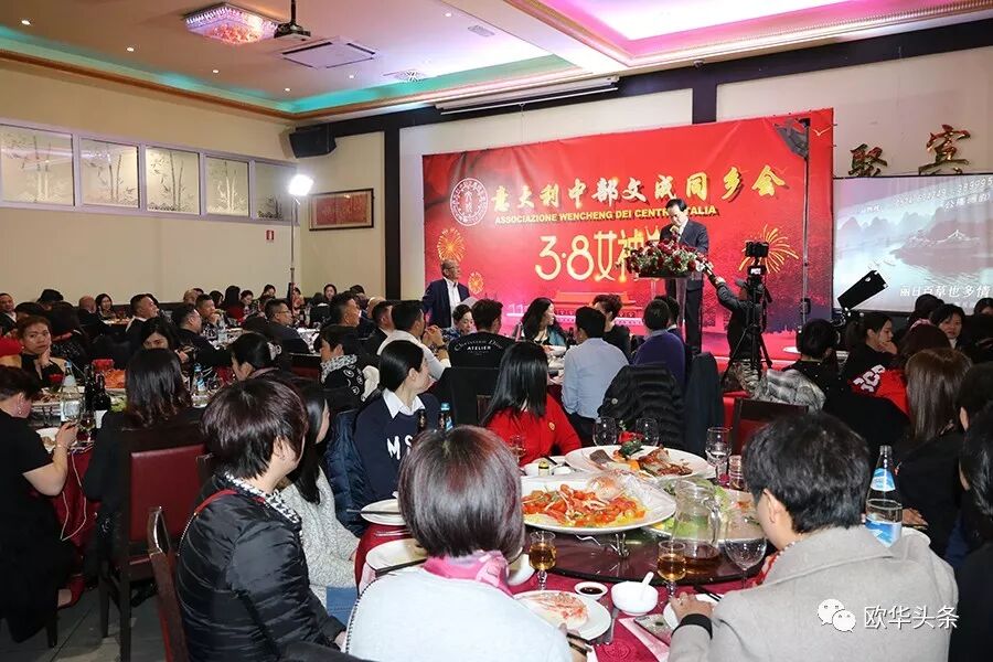 意大利《华人街》一策报道:春意浓浓在这百花齐放的美好日子里,意大利当地时间3月12日晚,意大利中部文成同乡会在佛罗伦萨新聚宾大酒店隆重举行庆“三八”国际妇女节。虽然三月八日过去数日,但是整个三月都属于女人,因为三月是万物复苏的季节,三月是生命力旺盛的季节,三月里的女人最美丽。中国驻佛罗伦萨总领馆王辅国总领事夫妇及领馆的领导们、意大利中部各侨社代表,以及生活在意大利中部地区的广大文成籍女同胞们、华文媒体记者逾300人欢聚一堂,共同庆祝这美好的节日。当天的晚会由意大利中部文成同乡会秘书长吴齐忠主持。