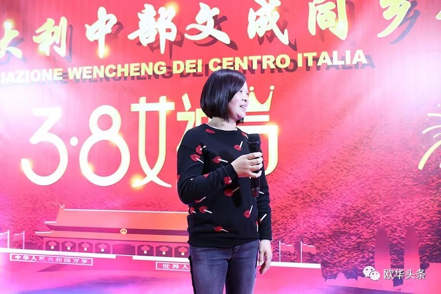 意大利中部文成同乡会会长胡立元在致辞中向所有的美女姐妹们致以节日的问候和美好的祝愿,祝大家节日愉快、身体健康,阖家欢乐、青春永驻。他表示,自古以来“女性”就是人类讴歌、赞颂的主题之一。母爱的伟大、妻子的辛苦、姐妹的靓丽、女儿的活泼,这些温馨的字眼是人类心灵最深处的温暖与慰籍。世界因为有了女性才美丽,时代的洪流记载着女性巾帼勇于奉献的激情,历史的丰碑记载着女性巾帼不朽的业绩。胡立元会长把最美好的祝愿献给在场的各位领导,各位来宾,以及全体的妇女姐妹们,祝各位姐妹三八女神节快乐。