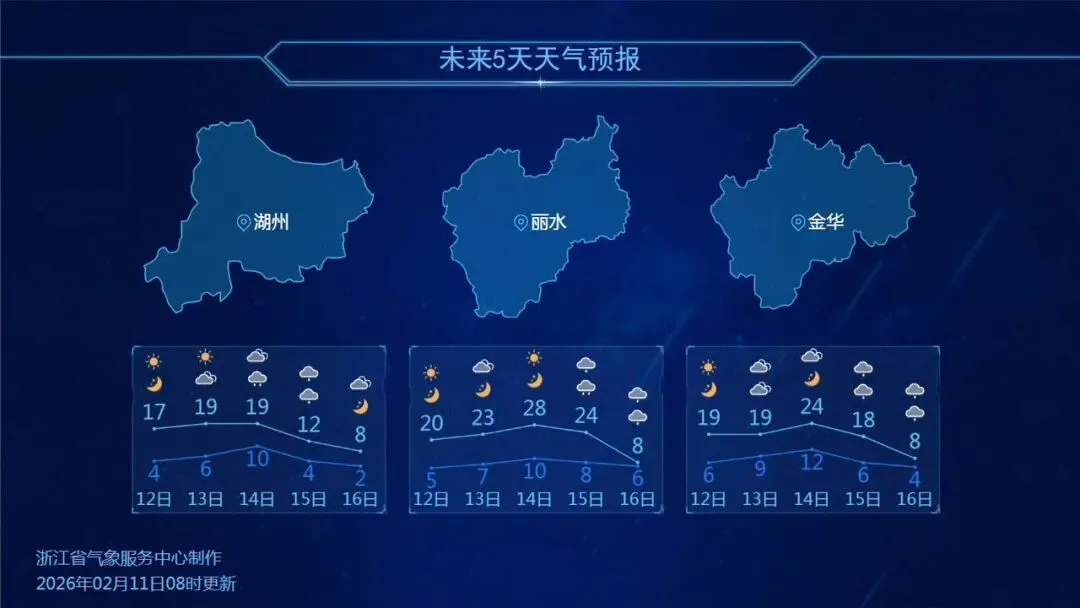 昨天(2月11日),全省大部地区气温继续回升,最高气温普遍升到了14~16℃。不过,温州等浙南地区云层较厚,升温乏力。