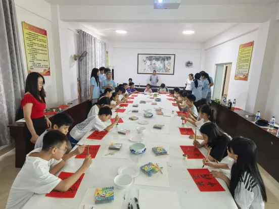 吴福寿积极链接西安美院等艺术文化资源,为东中村儿童开设书法课堂。