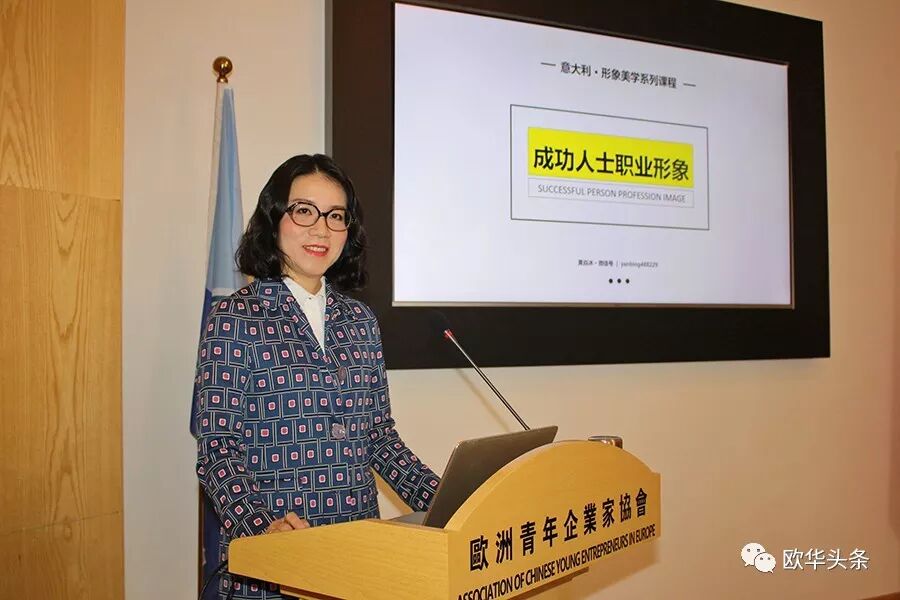意大利《华人街》讯(记者一策):4月18日、4月19日,黄焱冰专题讲座“成功人士职业形象”及“形象美学”在意大利普拉托的欧洲青年企业家协会隆重举办,爱美之心人皆有之,许多华人华侨慕名前来听课。黄焱冰是广西艺术学院影视与传媒学院副教授,人物形象设计专业硕士研究生导师;中国流行色协会理事;台湾实践大学时尚设计学系访问学者、客座教授;意大利佛罗伦萨大学、佛罗伦萨美术学院访问学者;中国资深形象美学、时尚生活美学专家,中国第一代人物形象设计方向硕士研究生导师。