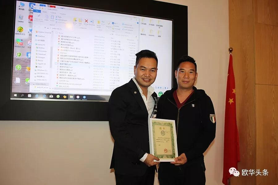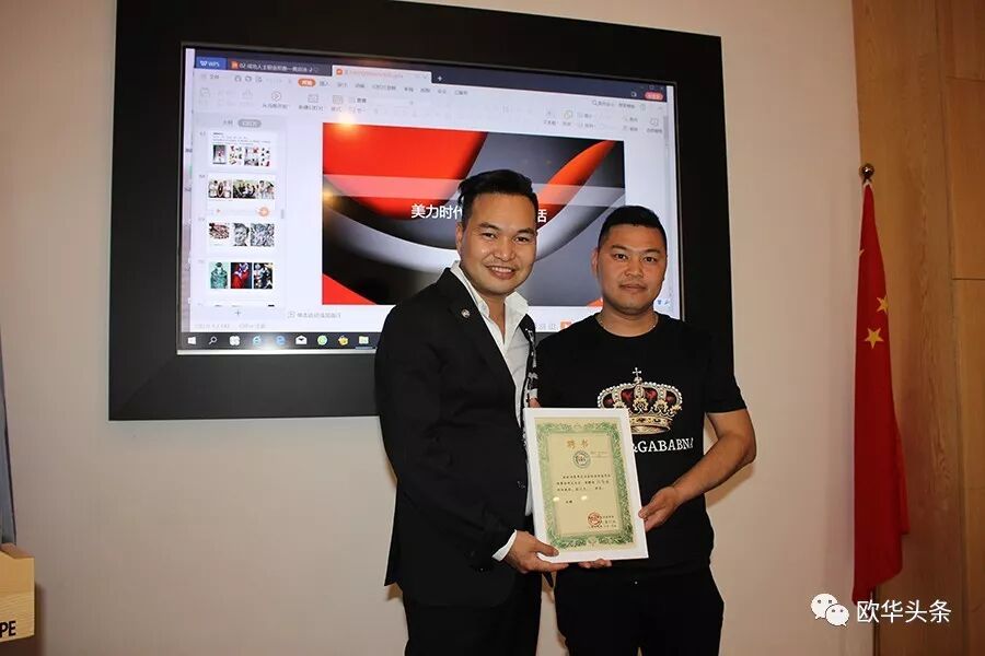 随后,黄勤海会长向新加入欧洲青年企业家协会的副会长陈荷填、金登攀、邹祖强三人颁发协会聘书。