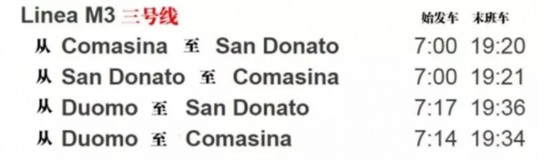 此外,米兰地铁的发车间隔和运营时间也有所调整,具体信息如下: