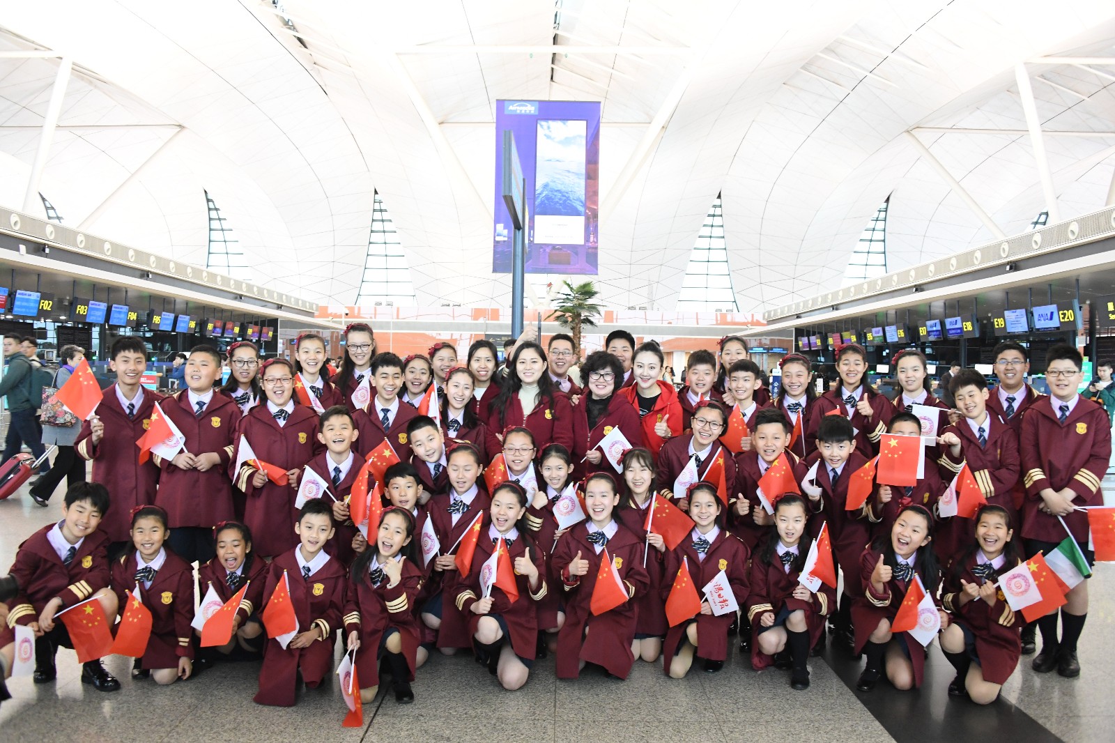 经过了十多个小时的飞行,沈阳日报童声合唱团于当地时间4月30日18时40分抵达了意大利首都罗马。