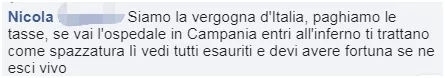 网友@Nicola:这真是意大利的耻辱,我们交税,但如果去坎帕尼亚大区的医院就好像进入地狱……得需要点运气才能活着出来。