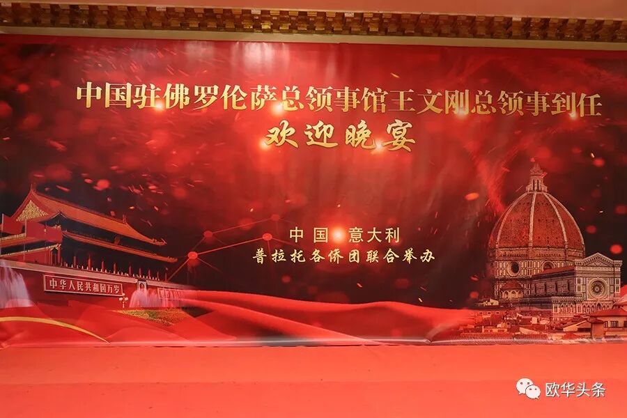 意大利《华人街》讯(记者一策):2019年5月22日晚,意大利普拉托侨界在当地的华侨饭店举办王文刚总领事到任欢迎会,各侨社代表、华文媒体、华人华侨近500人出席。