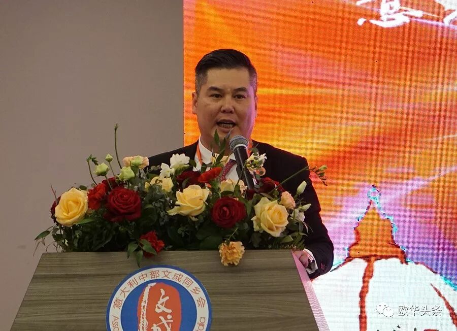 ▲意大利中部文成同乡会会长胡寨弟致辞