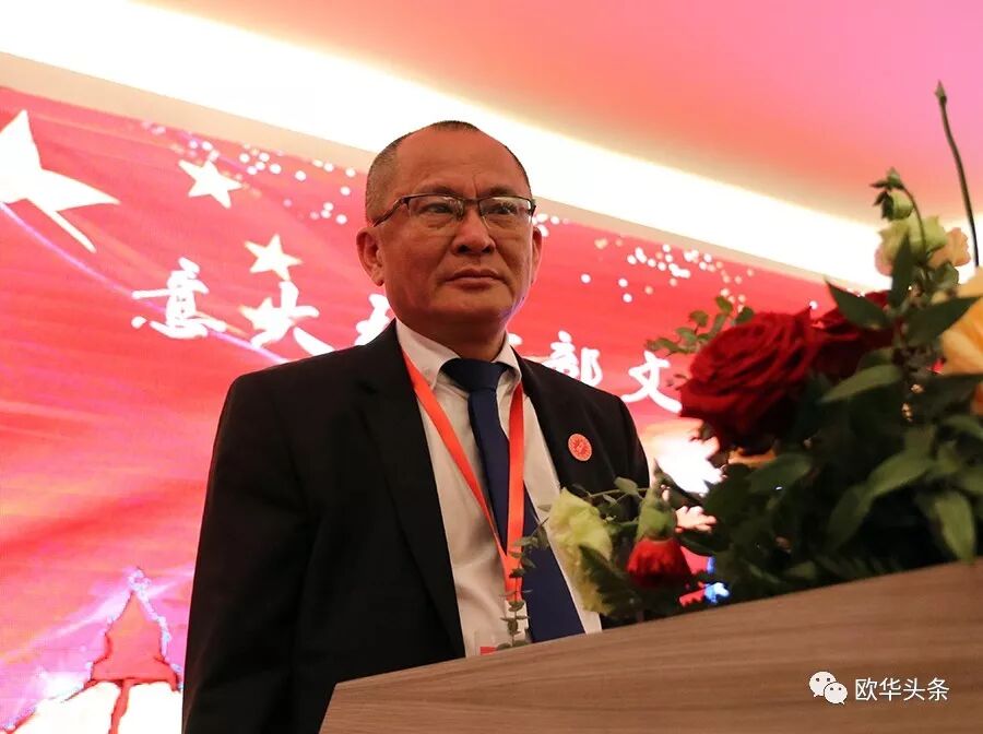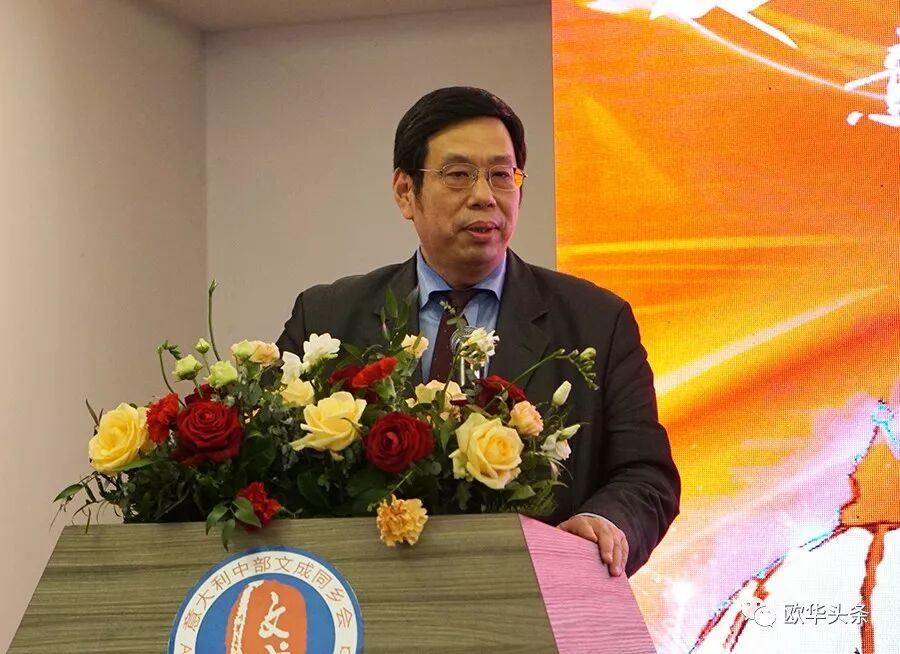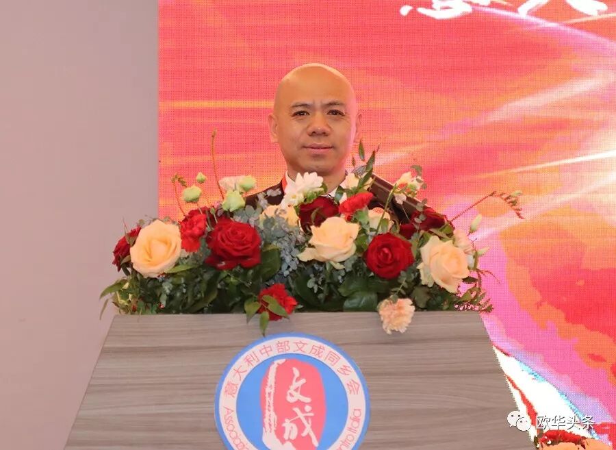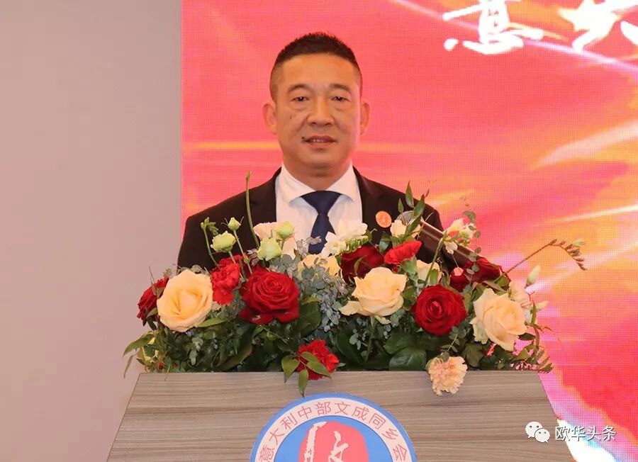 意大利中部文成同乡会第二届会长胡寨弟对浙江省侨联"亲情中华"艺术团的艺术家们不辞辛劳,跨越千山万水来意大利演出表示感谢,对到场观看演出的社会各界表示欢迎! 他强调,这场具有中国元素、民族特色的盛宴展示了中华文化的无穷魅力,作为此次活动的主办方,他代表意大利中部文成同乡会向大家致以最真挚的问候和美好的祝愿!