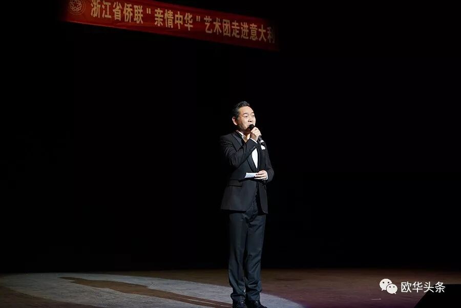 中国驻佛罗伦萨总领馆王文刚总领事在百忙之中出席,并观看了演出,他感谢这么多年以来浙江省侨联在国内外举办各式各样的活动,表达了侨联领导对浙江籍侨胞的关心,促进彼此间的沟通与交流,同时祝愿演出圆满成功。