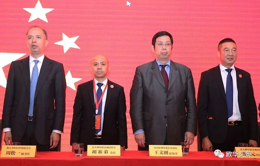 在浙江省侨联"亲情中华"艺术团演出之后,意大利中部文成同乡会在佛罗伦萨Libeccio大酒店举行隆重的第二届换届庆典大会,中国驻佛罗伦萨总领馆王文刚总领事、意大利各社团代表、华人华侨、华文媒体等社会各界友好人士逾600人出席。