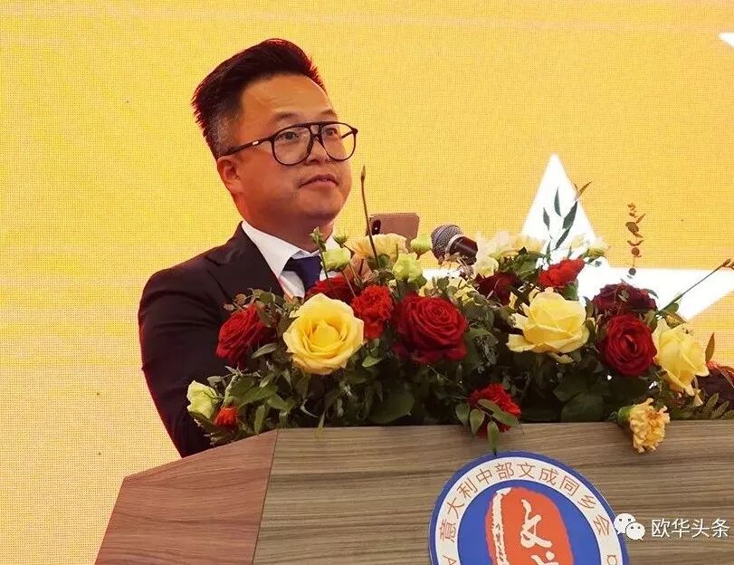 周松一秘书长祝愿意大利中部文成同乡会越办越好,祝所有侨胞事业兴旺,祝各位侨领乡贤、各位嘉宾朋友身体健康、阖家幸福、万事如意。