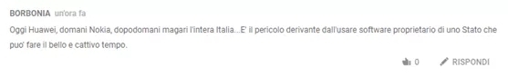 网民@BORBONIA:今天是华为,明天可能就是诺基亚,后天或许是整个意大利...用美国人的软件是非常危险的!
