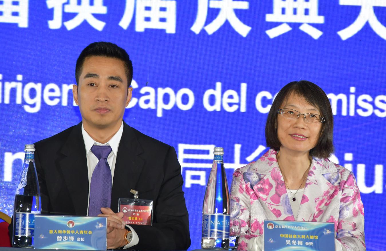 中国驻意大利大使馆吴冬梅参赞代表驻意使馆与会并祝贺曾步锋连任会长,吴参高度评价了曾步锋会长及其领导的会长团在配合使馆工作、维护当地华人区治安和融入当地社会等多方面所作的贡献。吴参强调自己见证了意大利华侨华人青年会的成长,希望青年会发挥独特的优势,抓住机遇,作出新的努力,相信在曾步锋会长的领导下,青年会会务一定会蒸蒸日上。