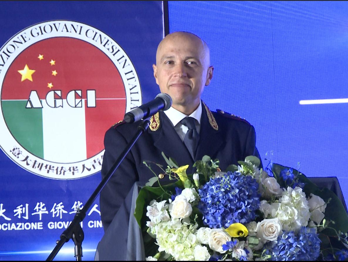 罗马ESQUILINO地区警察局局长GIUSEPPE MOSCHITTA应邀出席并对曾步锋连任意大利华侨华人青年会会长表示热烈祝贺,感谢意大利华侨华人青年会特别是曾步锋会长为维护ESQUILINO地区当地的治安和秩序所作出的努力,希望今后更加紧密的配合,以今天的成绩和经验为契机,加强多方合作,共同打造一个安静祥和的环境。