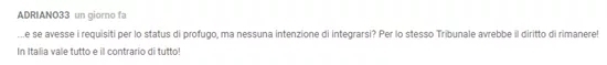 网友@ ADRIANO33: “那么如果那些有资格取得难民身份,但没有融入意大利意愿的移民呢?法院仍然会认为他有权利留下来!在意大利,万事皆允!”