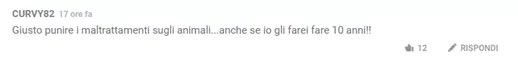 网友@CURVY82:”惩罚虐待动物的人,(这么判)是对的…但如果是我来判,我会让他在监狱里待10年!!”