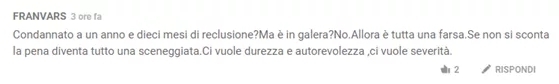 网友@FRANVARS:“被判1年零10个月的监禁?他已经在监狱里吗?如果答案是否定的,那么这一切仅仅只是一场闹剧罢了。如果他没有服满刑就被放了,那一切就会变成一场闹剧。(意大利)需要极其严格、权威的审判。”