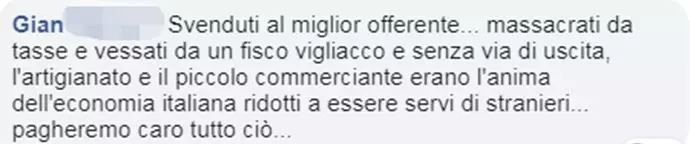 网友Gian:谁出价高就卖给谁…我们被税务压垮了而且没有出路,手工业者和小商人是意大利的灵魂,现在他们沦为给外国人服务…我们将会付出很大代价。