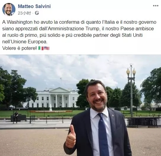 看似夸张,但萨尔维尼的此番言论并不是空穴来风,事实上,他正是希望借此次华盛顿之行,树立自己成为特朗普政府盟友的形象。