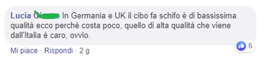 网友@Lucia:“在德国和英国,食物很烂,质量很低,这就是很便宜的原因。来自意大利的高质量食物当然就显得贵了。”
