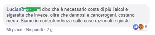 网友@Luciano:“不可缺少的食物比有害而且致癌的香烟和酒贵。意大利总是在理性和正义方面反向而行。”