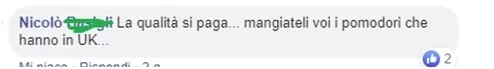 网友@Nicolo:“(获得)高品质(的食物)是要钱的。。。(不然)你们去吃英国的西红柿。。。”