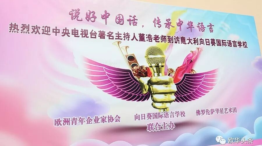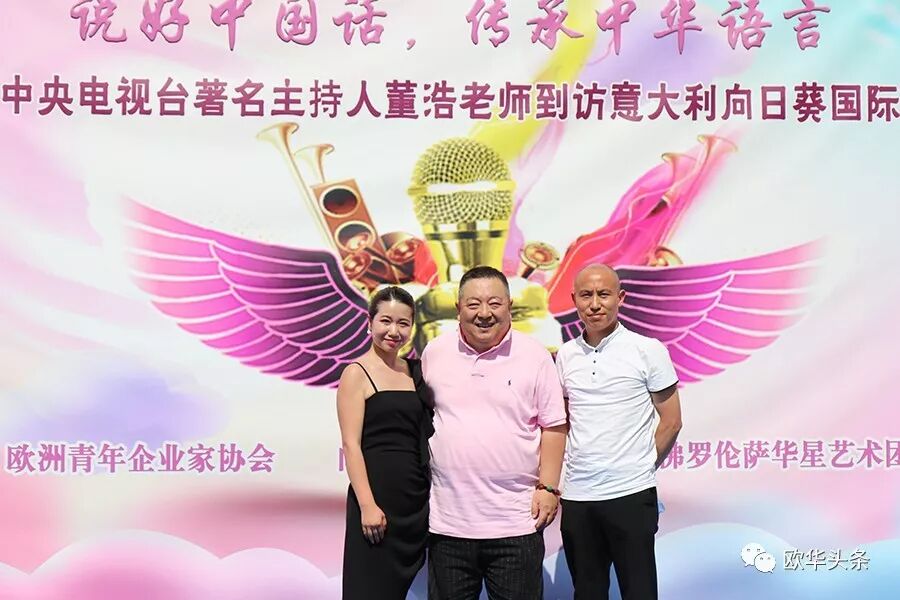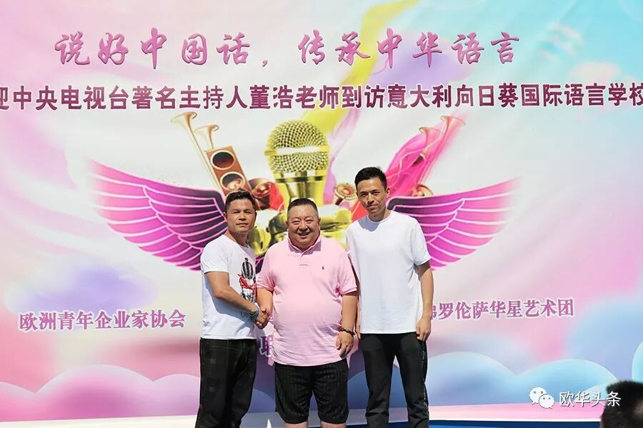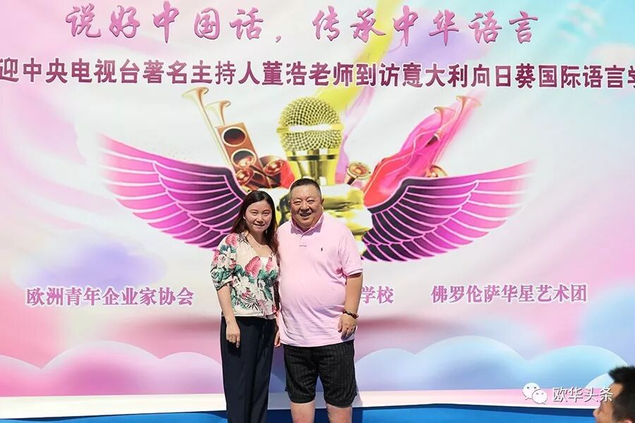 意大利《华人街》讯(记者一策):2019年6月27日上午10时,先后主持《天地之间》、《大风车》、《芝麻开门》,并为《铁臂阿童木》、《米老鼠和唐老鸭》、《大头儿子和小头爸爸》等动画片配音的中央电视台少儿节目主持人董浩到访意大利普拉托向日葵国际语言学校,受到该校全体师生和家长们及当地侨领们的热烈欢迎。
