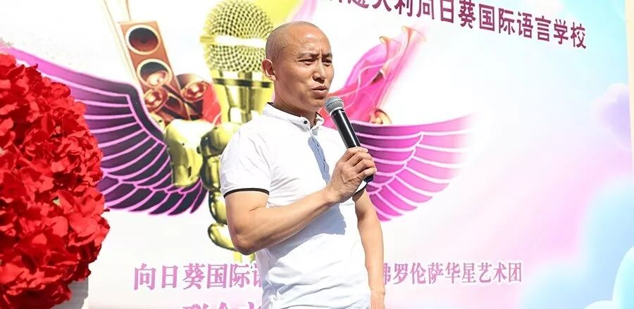 意创教育中心主任谢乃龙希望在海外的孩子能够学好中国文化,学习传承中华民族语言,此次在米兰举行的播音主持选拔比赛上,全意选手PK,他祝愿向日葵国际语言学校能够载誉而归。