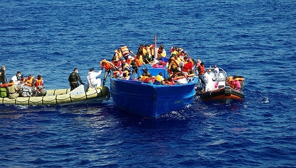 2014年9月9日,意大利海军正在地中海救助大约700名难民。图片来源:视觉中国