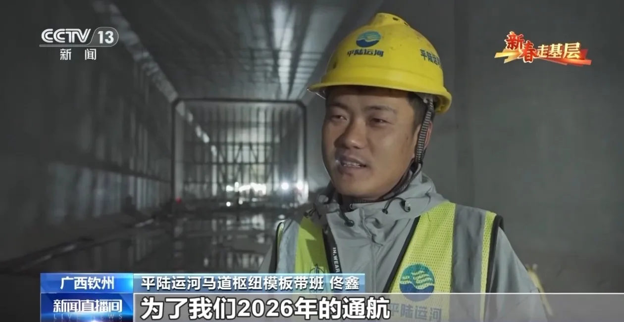 西部陆海新通道骨干工程——平陆运河,是新中国成立以来建设的第一条通江达海的运河工程,计划今年底主体建成通航。在位于广西钦州的平陆运河控制性工程——马道枢纽的建设现场,工程已进入关键而精细的内部整合阶段,工人们正在地下60米深的地方进行宽缝回填施工,它就像一场不容有失的“精微手术”。钢筋工李华峰和他的工友们正以毫米级的严谨,为这座超级工程“焊接骨骼”,在日复一日地坚守中,一寸寸推动“骨骼生长”。