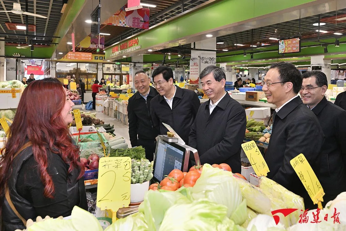 夏商江头市集作为厦门岛内重要的食材批发零售综合体,近期启动“平价市集惠民购”活动,让市民买年货更实惠、更放心。周祖翼、赵龙走进市集,认真听取划行规市、民生商品保供稳价和市场管理等工作介绍,察看农产品快检中心,了解日常抽检和食品安全风险预警机制落实情况,肯定市集的“智慧农贸”系统为市民提供了便捷、透明、可追溯的购物体验。市集内产品种类丰富、货量充足,周祖翼、赵龙与商户经营者、市民和市场管理者交流,仔细询问农副食品价格、货源渠道、节日销售情况等。周祖翼说,春节是传统的消费旺季。要加强保供稳价,优化货源组织,畅通产销衔接,科学精准管理,更好满足群众节日多样化需求。要保障食品安全,严格把好货源关、检测关、质量关,全力守护老百姓“舌尖上的安全”。