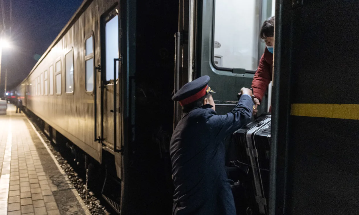 57岁的杨大哥坐在卧铺车厢靠窗的凳子上,悠闲地看着窗外风景。他在北京水泥厂工作已十多年,当晚将在王安镇站下车。“票价只要20多块钱。小站都停,车开到镇上,下了车走回家就行。”他笑着说:“车虽慢,但很温暖。”